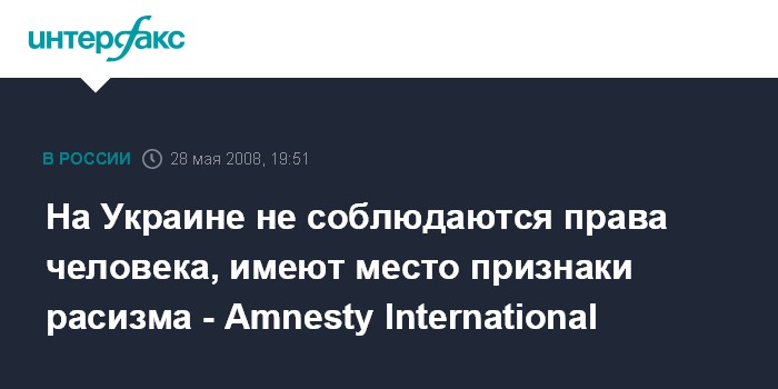 Киев. 28 мая. ИНТЕРФАКС-УКРАИНА - Представители Amnesty International ("Международной амнистии" - ИФ) заявили о несоблюдении прав человека на Украине и призвали общественность и руководство страны исправить существующую негативную ситуацию.