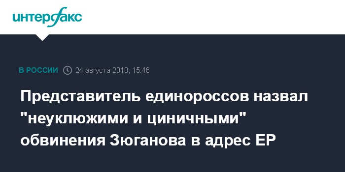 Москва. 24 августа. INTERFAX.RU - Попытки лидера КПРФ возложить вину за лесные пожары в стране на "Единую Россию" - циничны и призваны отвлечь внимание от проблем помощи погорельцам, заявил представитель единороссов.