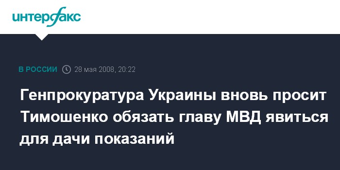 Генпрокуратура Украины вновь просит Тимошенко обязать главу МВД явиться для дачи показаний