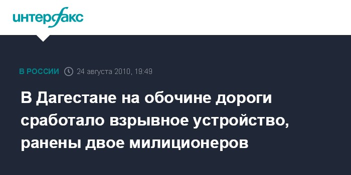Махачкала. 24 августа. INTERFAX.RU - Двое сотрудников милиции получили ранения в результате взрыва на окраине города Кизилюрта, сообщили "Интерфаксу" во вторник в пресс-службе МВД Дагестана.