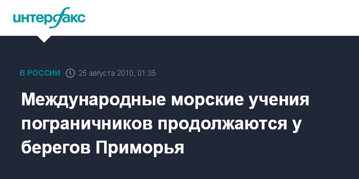 Владивосток. 25 августа. ИНТЕРФАКС - ДАЛЬНИЙ ВОСТОК - В Японском море у берегов Приморья продолжаются международные морские учения с участием кораблей и авиации пограничников ряда стран Тихоокеанского региона.