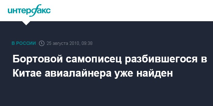 Пекин. 25 августа. INTERFAX.RU - На месте падения самолета "Эмбраер-190", разбившегося при подлете к аэропорту города Ичунь в провинции Хэйлунцзян на северо-востоке Китая, обнаружен бортовой самописец ("черный ящик"), сообщили в среду местные СМИ.