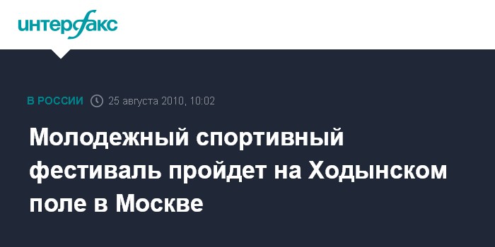 25 августа. INTERFAX.RU - На территории Ходынского поля пройдет молодежный спортивный фестиваль, сообщили "Интерфаксу" в городской администрации в среду.