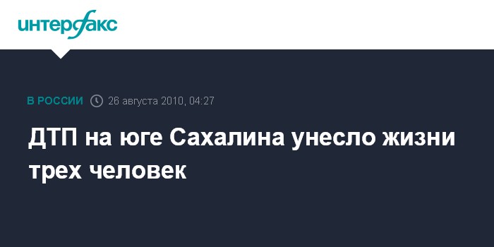 Южно-Сахалинск. 26 августа. ИНТЕРФАКС-ДАЛЬНИЙ ВОСТОК - Три человека погибли в результате ДТП в ночь на четверг на юге Сахалина, сообщили "Интерфаксу" в УГИБДД по Сахалинской области.