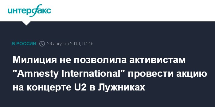 Милиция не позволила активистам "Amnesty International" провести акцию на концерте U2 в Лужниках