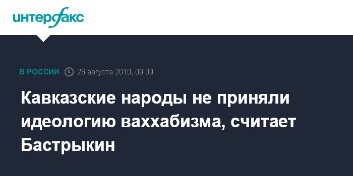 Москва. 26 августа. INTERFAX.RU - Глава СКП РФ Александр Бастрыкин считает, что идея ваххабизма теряет своих сторонников на Северном Кавказе.
