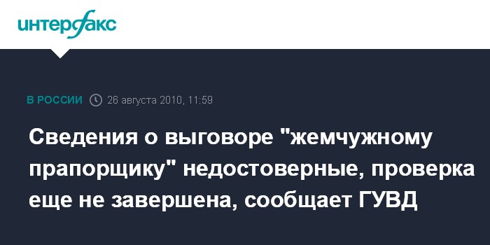 Санкт-Петербург. 26 августа. INTERFAX.RU - ГУВД Петербурга опровергает информацию об объявлении выговора "жемчужному прапорщику" за его поведение при разгоне митинга оппозиции у Гостиного Двора 31 июля.