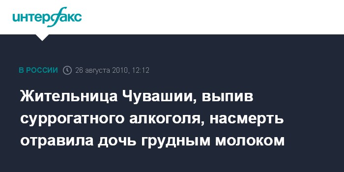 Чебоксары. 26 августа. INTERFAX.RU - Цивильский районный суд Чувашии приговорил 23-летнюю местную жительницу к одному году лишения свободы условно за то, что она в пьяном состоянии насмерть отравила трехмесячную дочь грудным молоком.