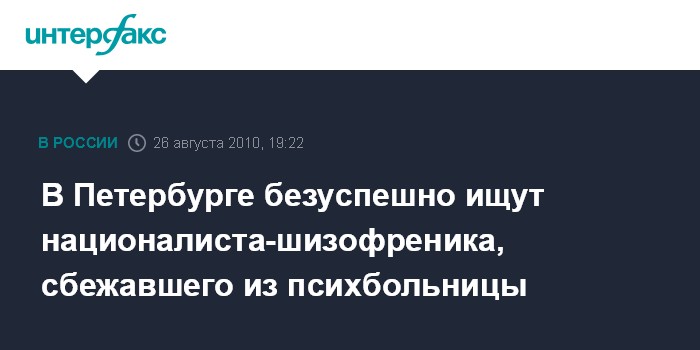 В Петербурге безуспешно ищут националиста-шизофреника, сбежавшего из психбольницы