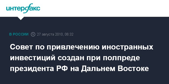 Совет по привлечению иностранных инвестиций создан при полпреде президента РФ на Дальнем Востоке