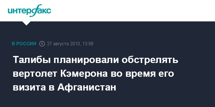 Лондон. 27 августа. ИНТЕРФАКС - Вертолет, на борту которого находился премьер-министр Великобритании Дэвид Камерон, чуть не подвергся атаке талибов в Афганистан в июне 2010 года, сообщает в пятницу британский телеканал Sky News.