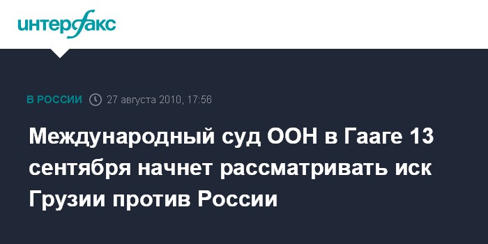 Тбилиси. 27 августа. INTERFAX.RU - Устные слушания по иску Грузии против России пройдут в Международном суде ООН в Гааге 13-17 сентября, сообщили в пятницу в Минюсте Грузии.