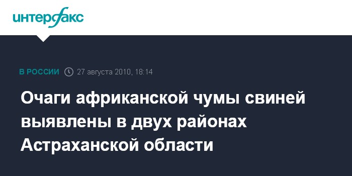 Ростов-на-Дону. 27 августа. INTERFAX.RU - В частных подворьях Камызякского и Кировского районов Астраханской области несколько свиней заболели африканской чумой (АЧС), сообщили агентству "Интерфакс" в пресс-службе Южного регионального центра МЧС России.