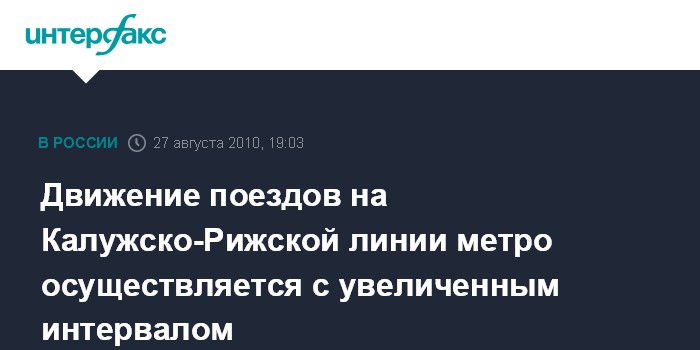 Москва. 27 августа. INTERFAX.RU - Поезда на Калужско-Рижской линии столичной подземки идут с увеличенным интервалом, передает в пятницу корреспондент "Интерфакса".