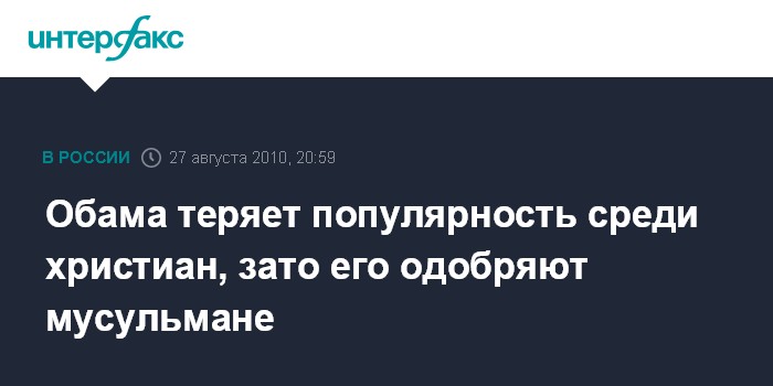 В среде неверующих, атеистов и агностиков поддержку действиям Обамы в ходе опросов в январе-июле 2010 года подтвердили 63% респондентов, тогда как в январе-июне 2009 года их было 75%, отмечается в сообщении.