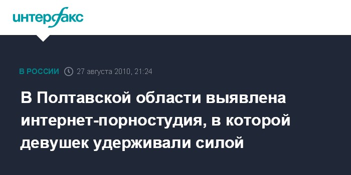 Полтава. 27 августа. INTERFAX.RU - Правоохранительные органы выявили в Комсомольске (Полтавская обл.) крупную интернет-порностудию, в которой девушек удерживали силой, сообщили журналистам в пресс-службе облуправления милиции в пятницу.