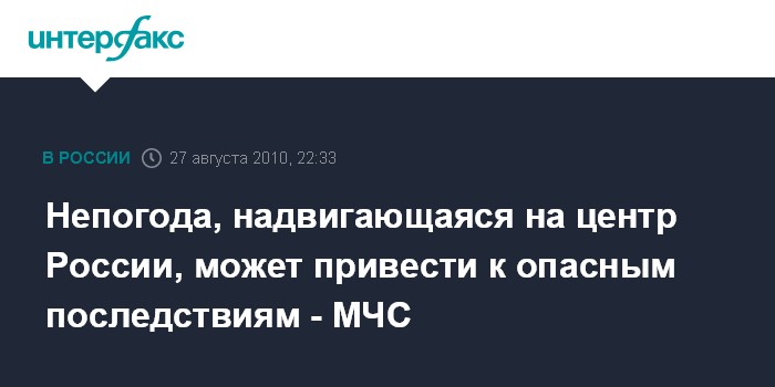 Москва. 27 августа. ИНТЕРФАКС - МЧС предупреждает об опасности атмосферного фронта, приближающегося к центральным районам России.