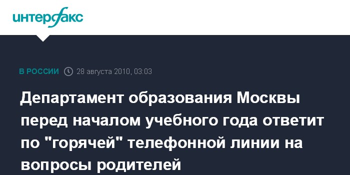 "Накануне нового учебного года департамент проводит традиционную горячую телефонную линию. На все вопросы, связанные с образованием в Москве ответят специалисты департамента образования города Москвы по телефону", - сказал собеседник агентства.