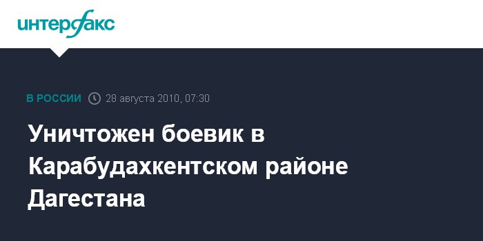 Махачкала. 28 августа. ИНТЕРФАКС-ЮГ - Участник незаконных вооруженных формирований был убит в субботу утром в Карабудахкентском районе Дагестана, сообщил агентству "Интерфакс-Юг" источник в МВД республики.