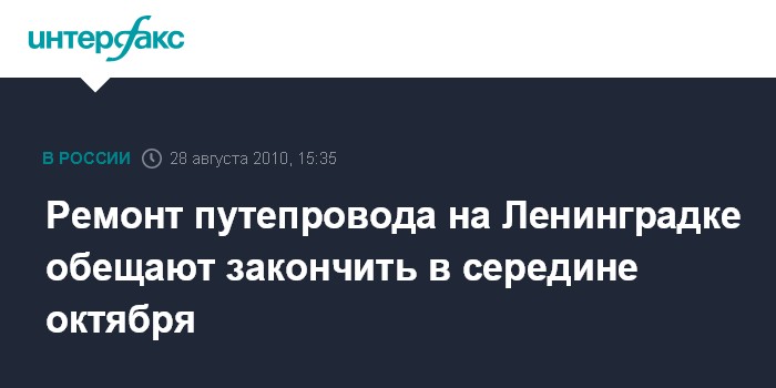 Москва. 28 августа. INTERFAX.RU - Аварийные ремонтные работы на Октябрьском путепроводе на 24-м км Ленинградского шоссе будут закончены к 15 октября 2010 года, сообщил первый заместитель мэра в правительстве Москвы, руководитель комплекса городского хозяйства Петр Бирюков.