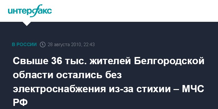 "В результате стихии потребители девяти районов испытывают перебои в электроснабжении - в Белгородском, Шебекинском, Яковлевском, Губкинском, Старооскольском, Грайворонском, Корочанском, Новооскольском, Красненском районах, а также в городе Белгород", - сообщили "Интерфаксу" в пресс-службе Центрального регионального центра МЧС России в субботу вечером.