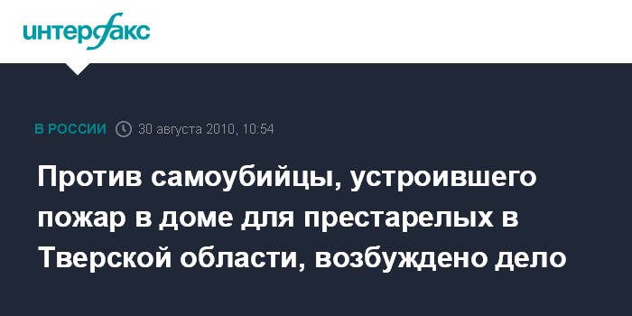 Против самоубийцы, устроившего пожар в доме для престарелых в Тверской области, возбуждено дело
