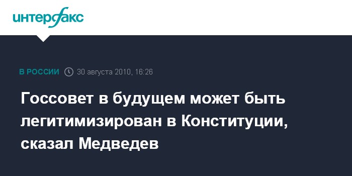 Москва. 30 августа. INTERFAX.RU - Президент РФ Дмитрий Медведев не исключил, что в Конституции России в будущем появятся положения, касающиеся Государственного совета.