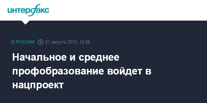 Москва .31 августа. INTERFAX.RU - Президент России Дмитрий Медведев считает, что национальный проект "Образование" должен быть распространен и на систему начального и среднего профессионального образования.