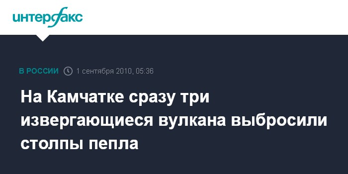 Петропавловск-Камчатский. 1 сентября. ИНТЕРФАКС-ДАЛЬНИЙ ВОСТОК - Вулканы Шивелуч, Ключевской и Карымский, извергающиеся на Камчатке, выбросили столпы пепла на высоту в несколько километров над уровнем моря.