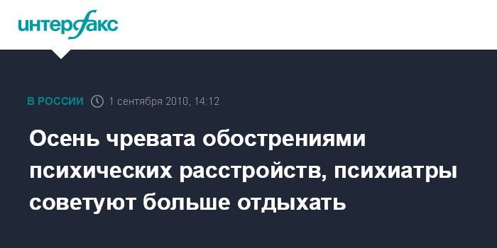 Осень чревата обострениями психических расстройств, психиатры советуют больше отдыхать