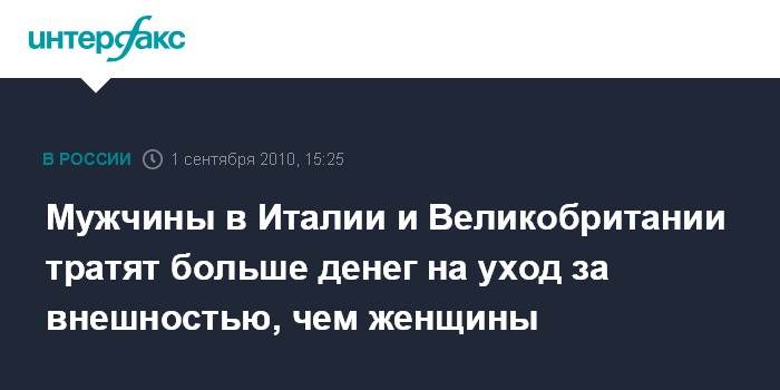Рим. 1 сентября. INTERFAX.RU - По результатам исследований, британские и итальянские мужчины тратят на покупку косметических средств больше денег, чем женщины, сообщает итальянская газета Corriere della Sera.