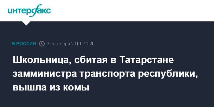 Школьница, сбитая в Татарстане замминистра транспорта республики, вышла из комы