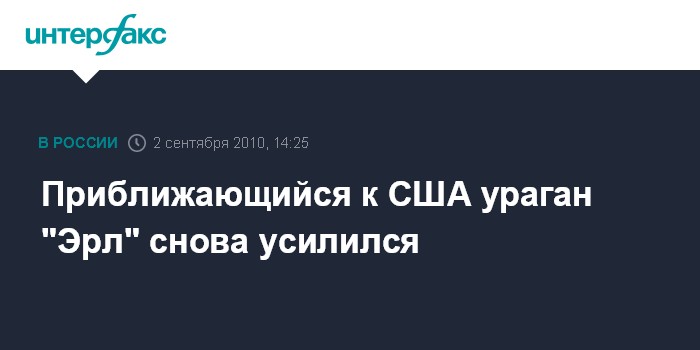 Вашингтон. 2 сентября. INTERFAX.RU - Ураган "Эрл", движущийся к восточному побережью США, вновь набирает силу, сообщила в четверг американская пресса.