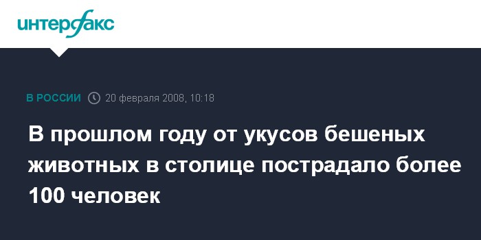 Москва. 20 февраля. INTERFAX.RU - За прошедший год от укусов бешеных животных в столице пострадали 104 человека, сообщили "Интерфаксу" в среду в территориальном управлении Роспотребнадзора по Москве.