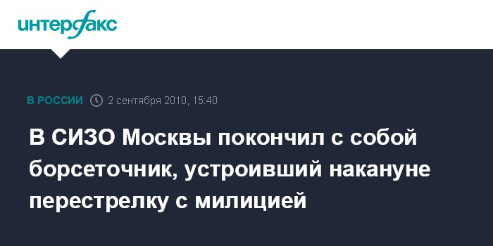 В СИЗО Москвы покончил с собой борсеточник, устроивший накануне перестрелку с милицией