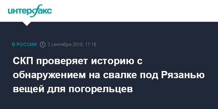 Москва. 2 сентября. INTERFAX.RU - Руководство СКП РФ поручило региональному подразделению провести проверку по факту обнаружения на свалке в Рязанской области вещей из груза гуманитарной помощи, предназначенной для пострадавших от природных пожаров.