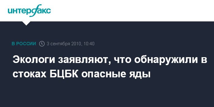 Москва. 3 сентября. INTERFAX.RU - Экологи предлагают закрыть Байкальский целлюлозно-бумажный комбинат (БЦБК) или переводить предприятие на замкнутый цикл производства в связи с обнаружением ядов и значительным превышением концентраций загрязняющих веществ в стоках комбината.