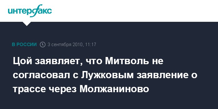 Цой заявляет, что Митволь не согласовал с Лужковым заявление о трассе через Молжаниново