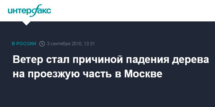 Москва. 3 сентября. INTERFAX.RU - Сильный ветер в пятницу днем на западе Москвы повалил дерево на проезжую часть, сообщил "Интерфаксу" источник в правоохранительных органах.
