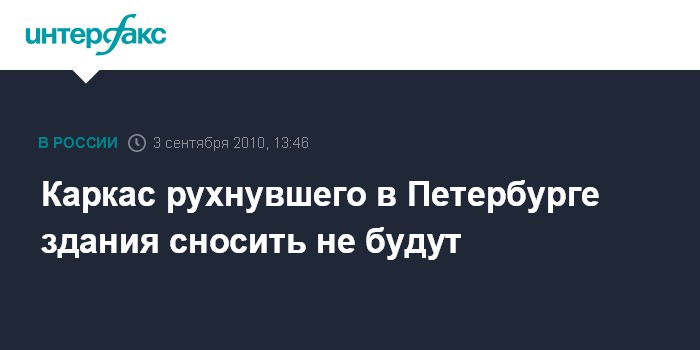 Санкт-Петербург. 3 сентября. INTERFAX.RU - Власти Петербурга приняли решение сохранить каркас частично обрушившегося здания на Лиговском проспекте.