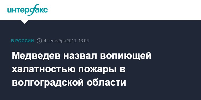 Медведев назвал вопиющей халатностью пожары в волгоградской области