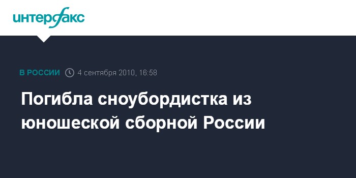 Женева. 4 сентября. INTERFAX.RU - Сноубордистка из юношеской сборной России скончалась в результате тяжелой травмы, полученной во время тренировки на одной из спортивных баз на юго-западе Швейцарии. По информации СМИ, погибла 14-летняя Полина Петраченко. Инцидент произошел в минувшую пятницу во время тренировки в спортивном лагере на горнолыжном курорте Саас-Фэ в кантоне Вале.