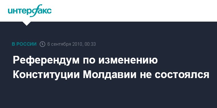 Кишинев. 6 сентября. ИНТЕРФАКС - Референдум по изменению Конституции Молдавии не состоялся из-за низкой активности избирателей, свидетельствуют последние данные, размещенные на сайте Центральной избирательной комиссии республики.