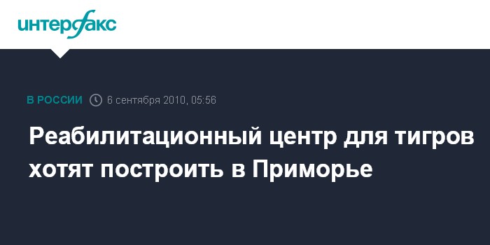 Владивосток. 6 сентября. ИНТЕРФАКС-ДАЛЬНИЙ ВОСТОК - В середине ноября 2010 года в Приморском крае планируется начать строительство первого в России полноценного реабилитационного центра для редких видов хищников, в том числе тигров, сообщает пресс-служба общественного экологического Фонда "Феникс".