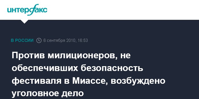 Против милиционеров, не обеспечивших безопасность фестиваля в Миассе, возбуждено уголовное дело
