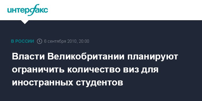 Лондон. 6 сентября. INTERFAX.RU - Британское правительство собирается ограничить число студенческих виз для иностранцев, сообщает в понедельник британская телерадиовещательная корпорация BBC.
