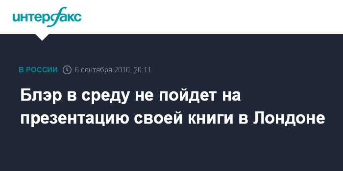 Лондон. 6 сентября. INTERFAX.RU - Бывший премьер-министр Великобритании Тони Блэр отменил презентацию книги мемуаров "Путь" ("A Journey"), которая должна была состояться в центре Лондона в среду, сообщила в понедельник британская газета Guardian.