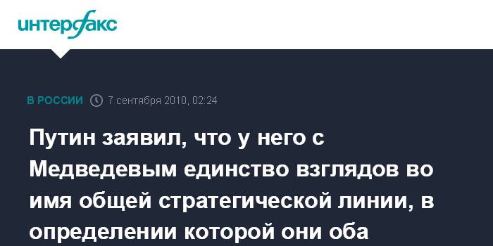 "Он (В.Путин) сказал, что это совершенно разные тандемы - там объединение противоположностей во имя конъюнктурных целей, здесь (в России) единство взглядов во имя общей стратегической линии, в определении которой и тот, и другой (и В.Путин, и президент РФ Дмитрий Медведев) принимали участие", - сказал Д.Песков.