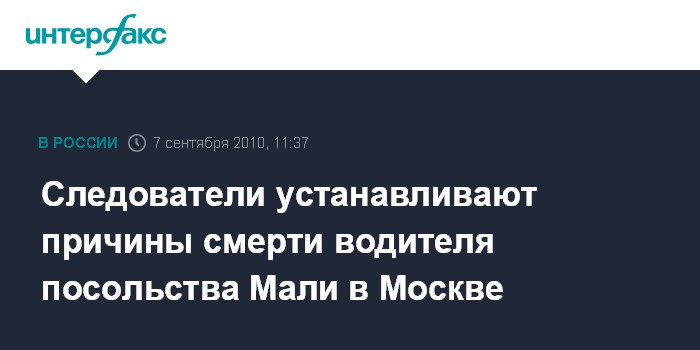 Москва. 7 сентября. INTERFAX.RU - В центре Москвы обнаружен мертвым водитель посольства Мали, сообщил "Интерфаксу" во вторник источник в правоохранительных органах.