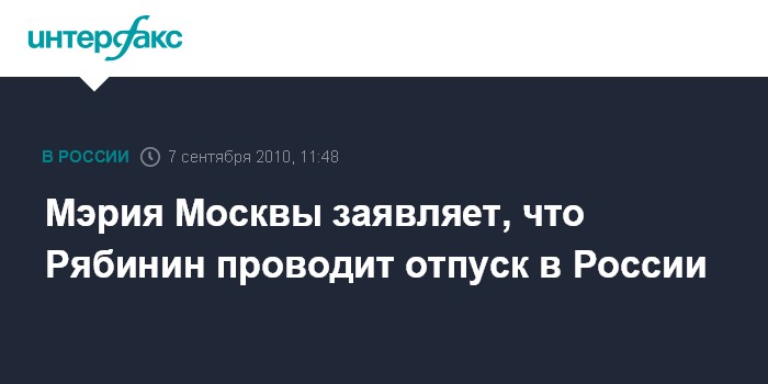 Мэрия Москвы заявляет, что Рябинин проводит отпуск в России